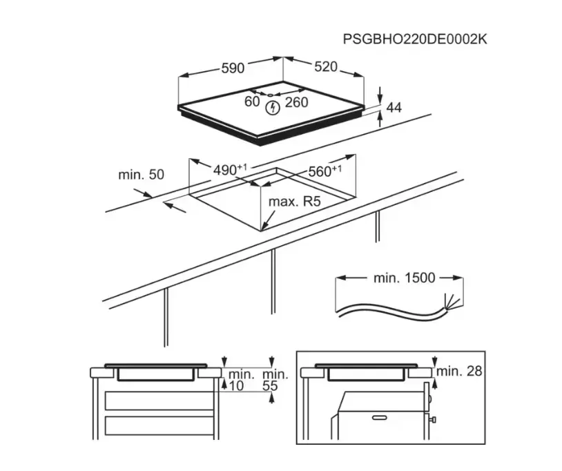 - Rozmery pre zabudovanie VxŠxH (mm): 44x560x490